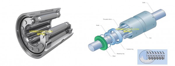 Recirculating 롤러 스크류의 구동 방식은 원주형 홈이 있는 롤러가 너트와 스크류 축 사이에서 회전하는 방식으로 구동하게 됩니다.