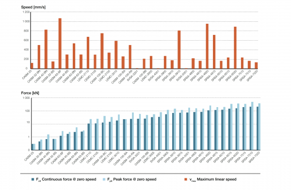 도표를 참고하시어, 사용하시고자 하는 환경의 추력 및 속도를 기준으로 모델 범위를 추려 보시기 바랍니다.