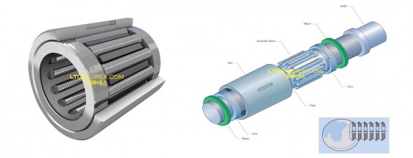 나선의 형태는 높은 하중 이송 용량과 고강성을 위해 큰 접촉 반경을 만들 수 있도록 원통형으로 되어 있으며,롤러를 고정하는 케이지는 롤러가 스크류 축에 평행을 유지하고 그 주변에 일정하게 간격을 유지합니다. Roller Screw 너트의 내부에서 일 회전한 후 롤러는 하나의 나선을 축 방향으로 이동하게 됩니다. 그다음 너트 내부의 축 방향 홈으로 들어가고 따라서 너트와 축 나선과 분리됩니다.