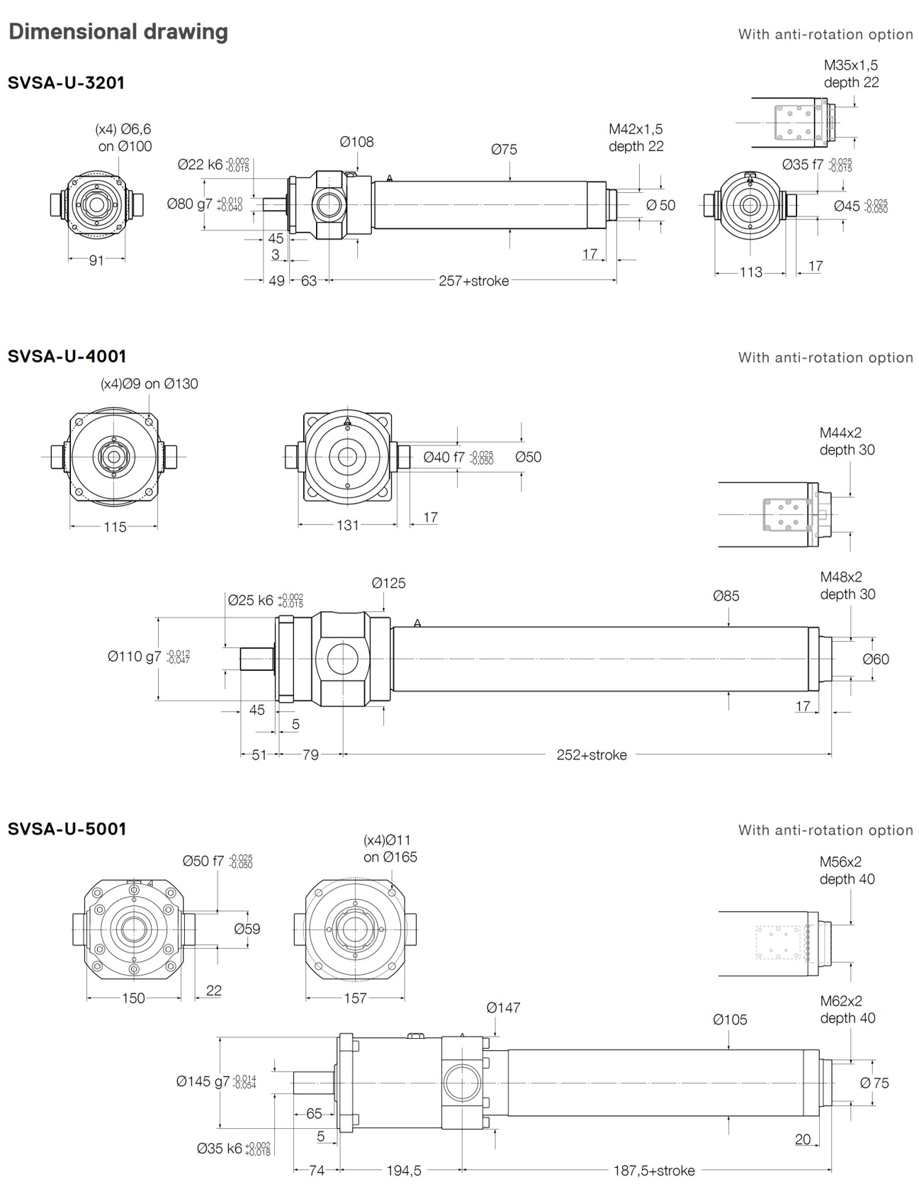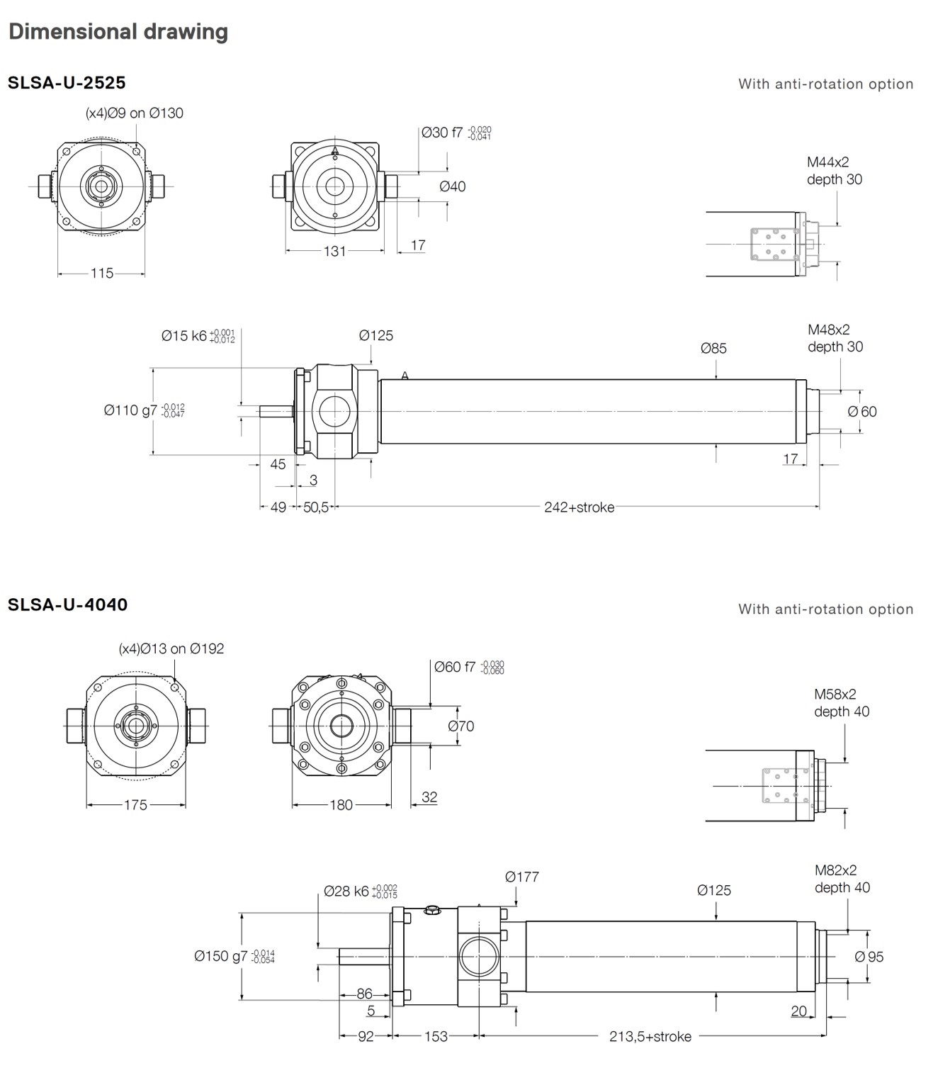 하우징은 높은 강성과 견고성을 위해 강철로 제작되어 있으며, 39mm~75mm까지 크기의 넓은범위의 볼 스크류 또는 롤러 스크류로 실린더가 구성되어 있습니다.