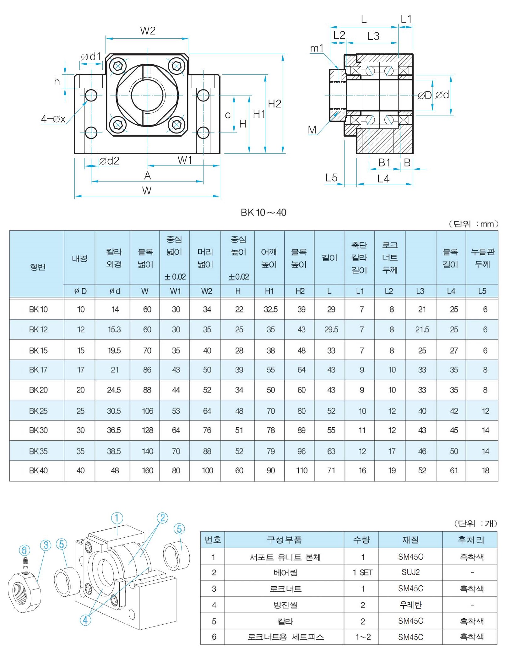 ■ 서포트유닛 고정 측 각형 BK 형