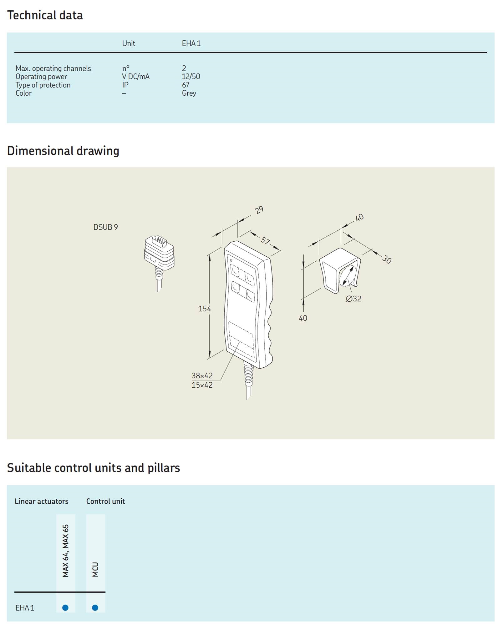 EHA-1 핸드 스위치는 MCU 컨트롤 유니트에 연결된 액추에이터 MAX-6 또는 TGC, THC 또는 TLC DC버전 등 2개의 액추에이터를 작동할 수 있습니다. 전면 패널에 위치한 Push 버튼을 사용하여 액추에이터의 움직임을 쉽고 정확하게 제어 할 수 있습니다. 원격 작동에 있어 더 많은 유연성을 제공하는 적외선 버전도 있습니다.