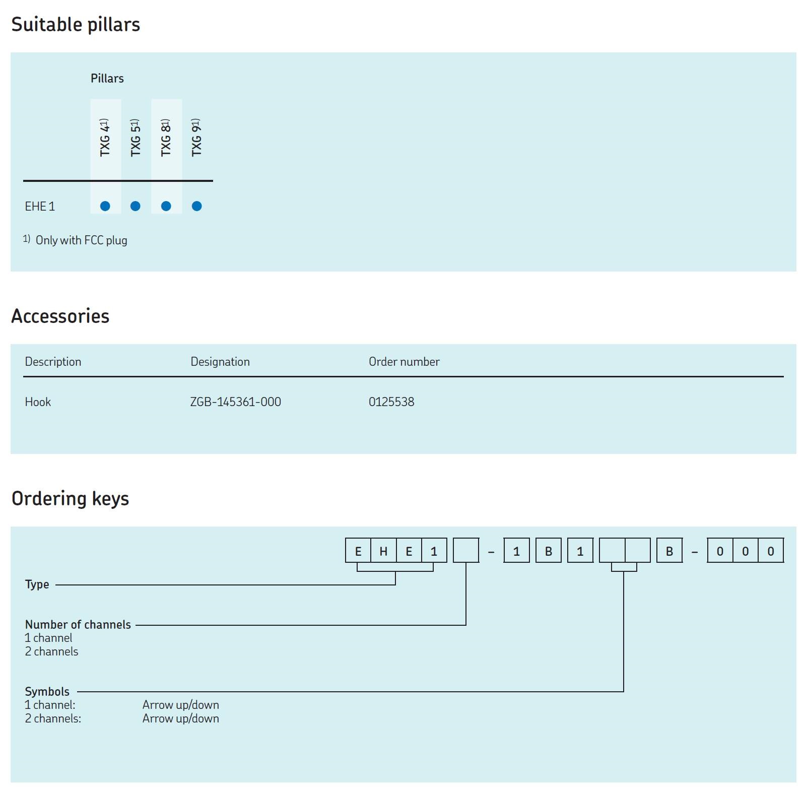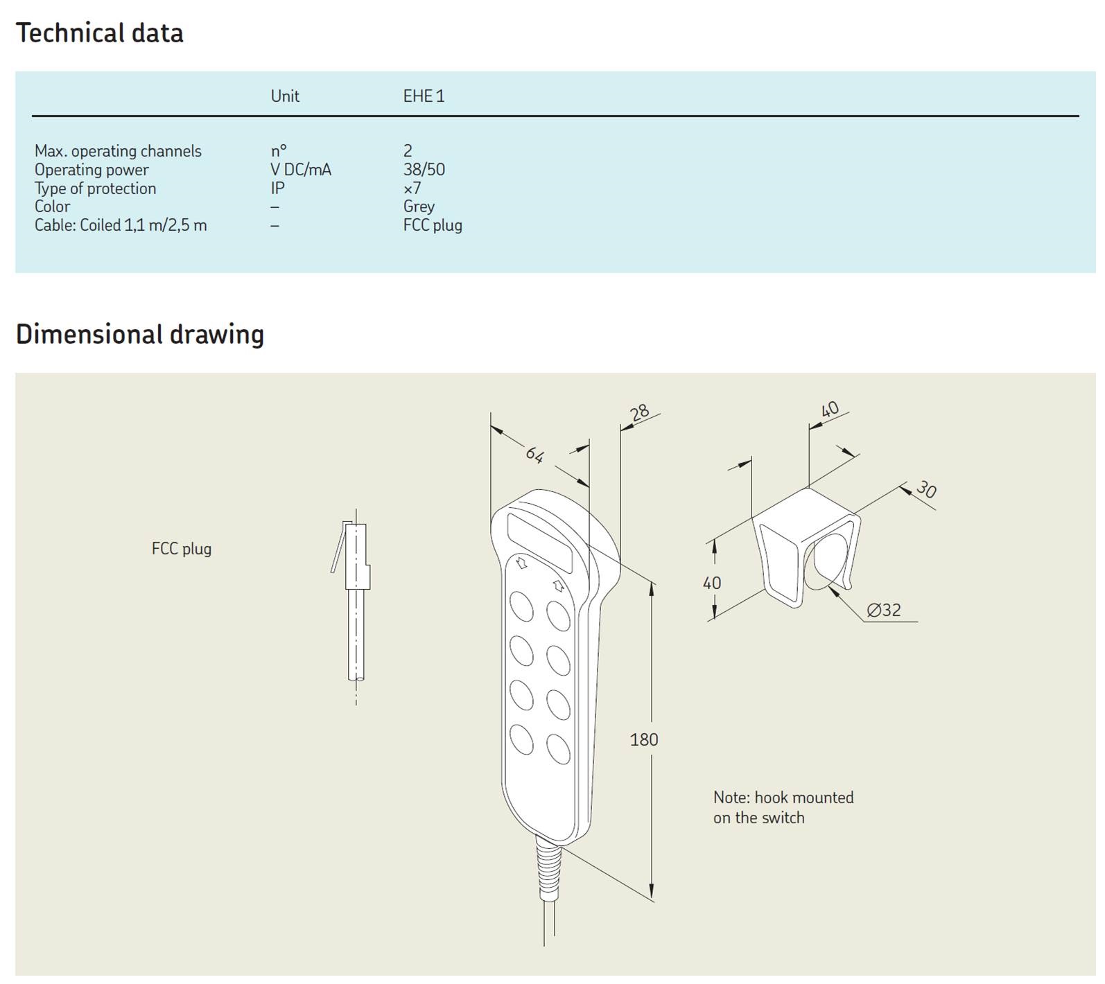 EHE 핸드 수위치는 전기리프트 TXG 또는 SEM 컨트롤 유니트 연결되어 최대 4개의 작동을 시킬 수 있습니다.