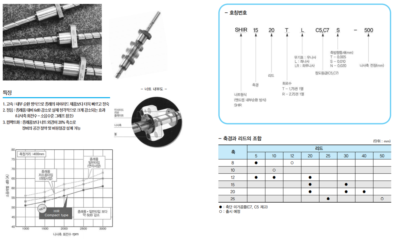 기존의 하이리드 제품 대비 정숙한 주행과 종래의 너트 대비 20% 축소된 너트로 사용자 설비의 공간 및 설비 비용의 절감 효과를 충족할 수 있다.