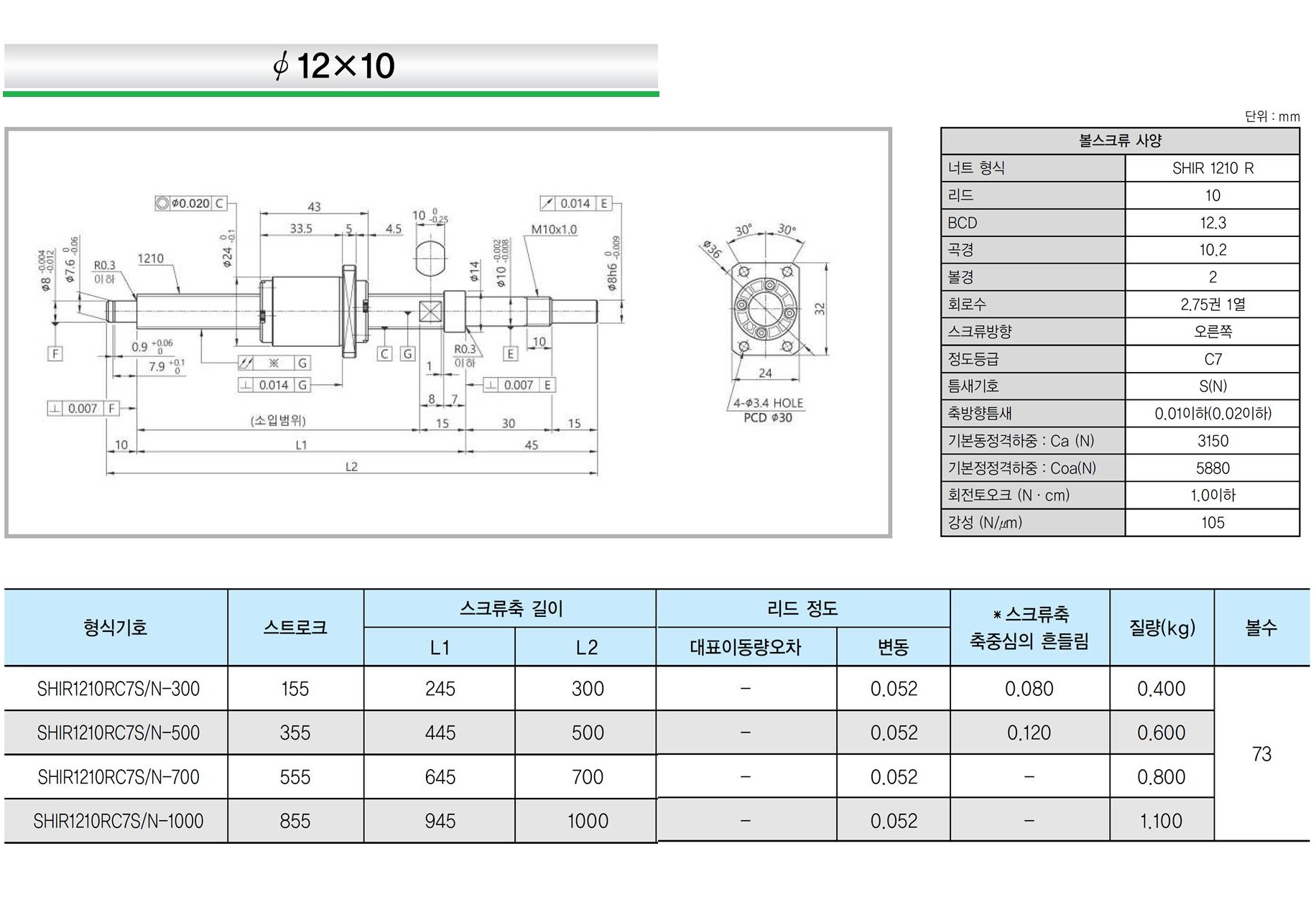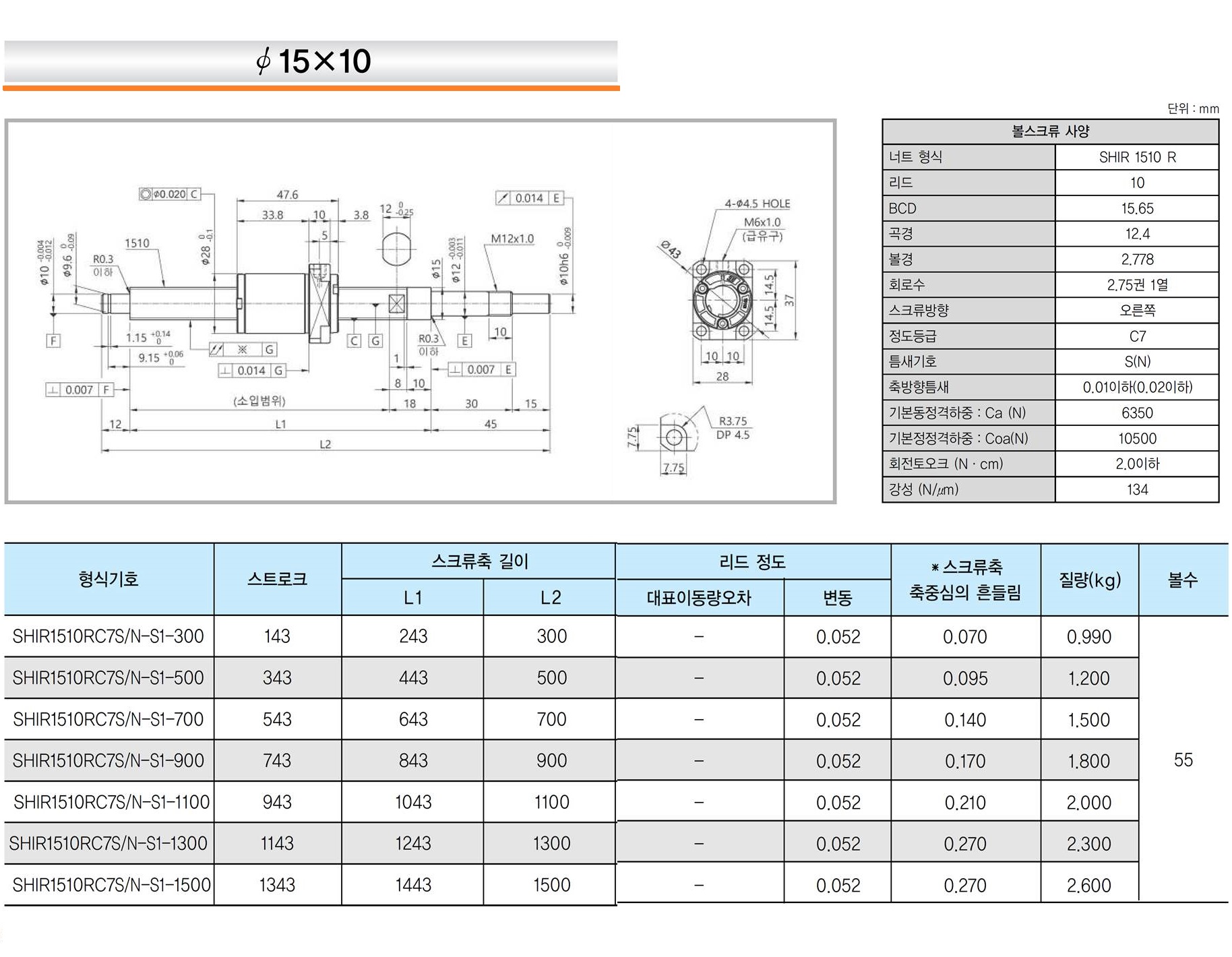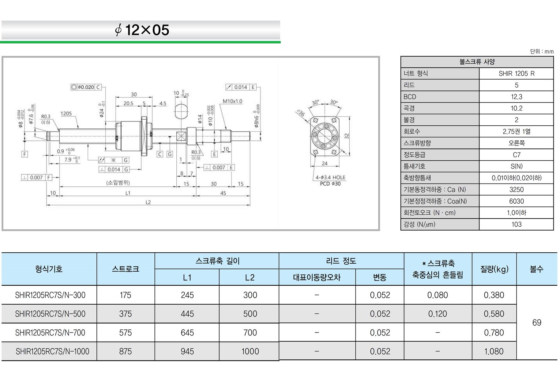 | 리드 4 mm | 리드 5 mm | 리드 10 mm | 리드 12 mm | 리드 20 mm | 리드 25 mm | 리드 30 mm | 리드 40 mm | 리드 50 mm |