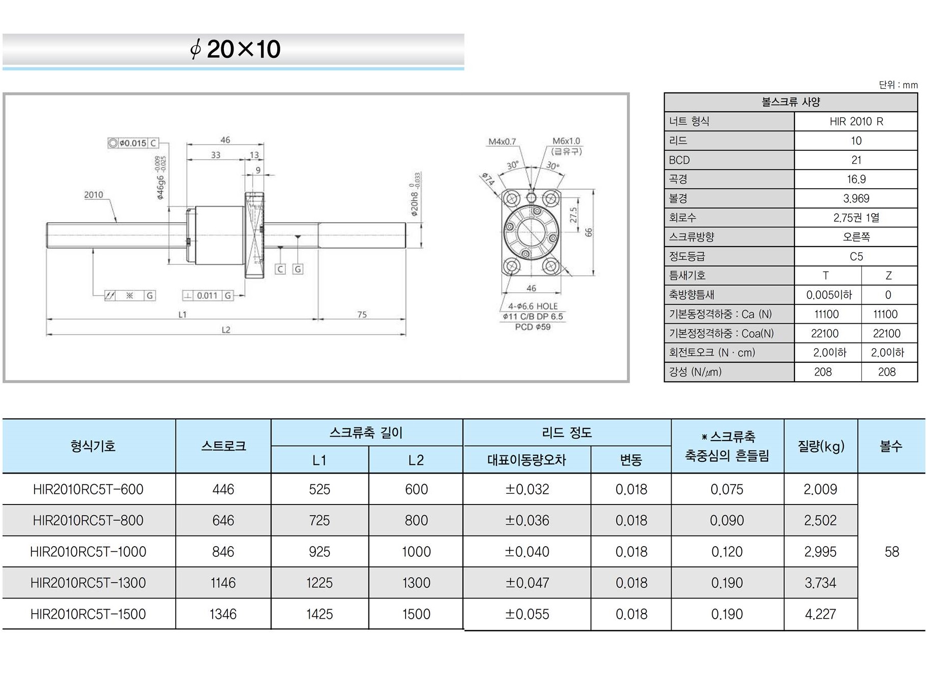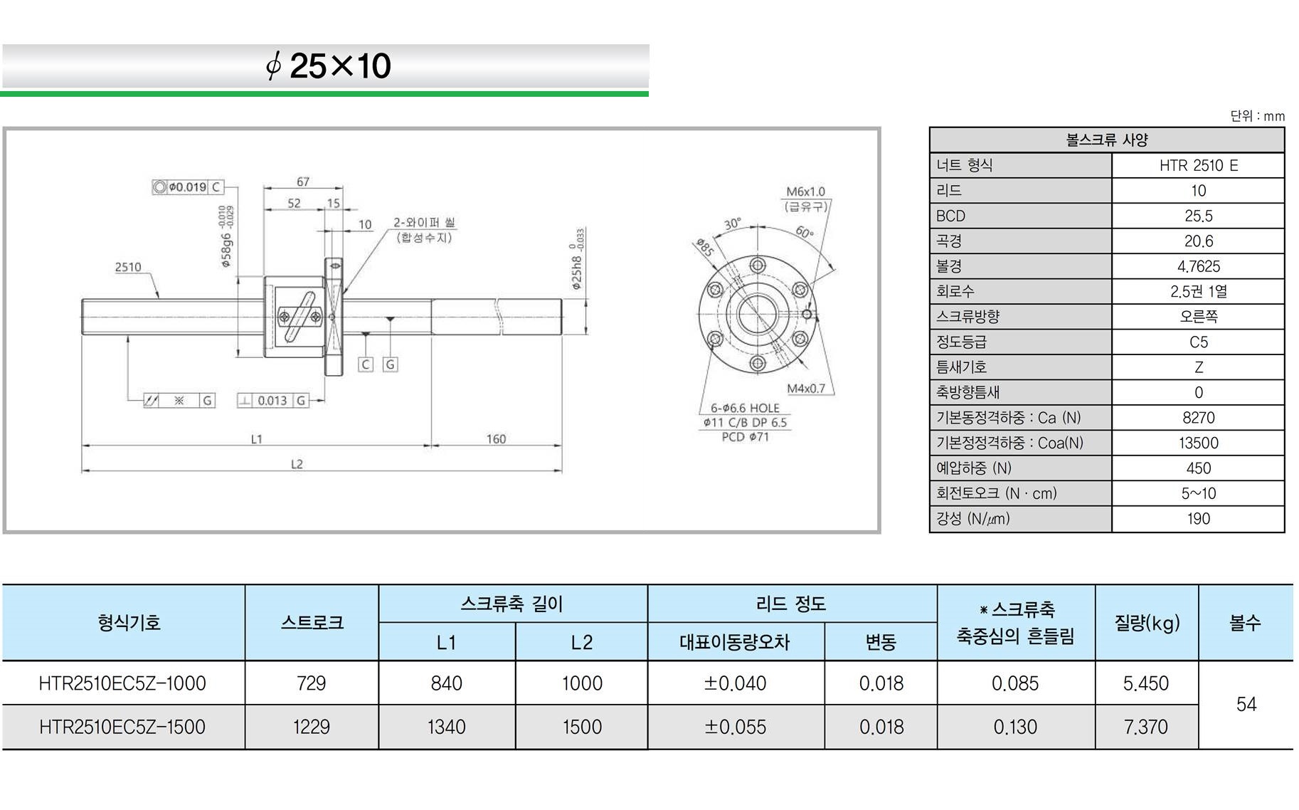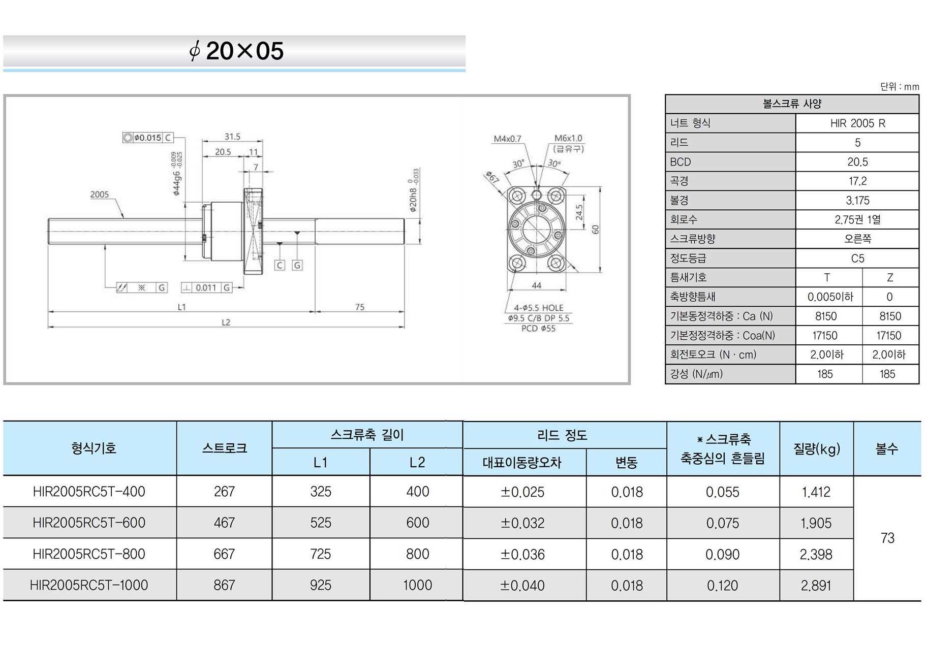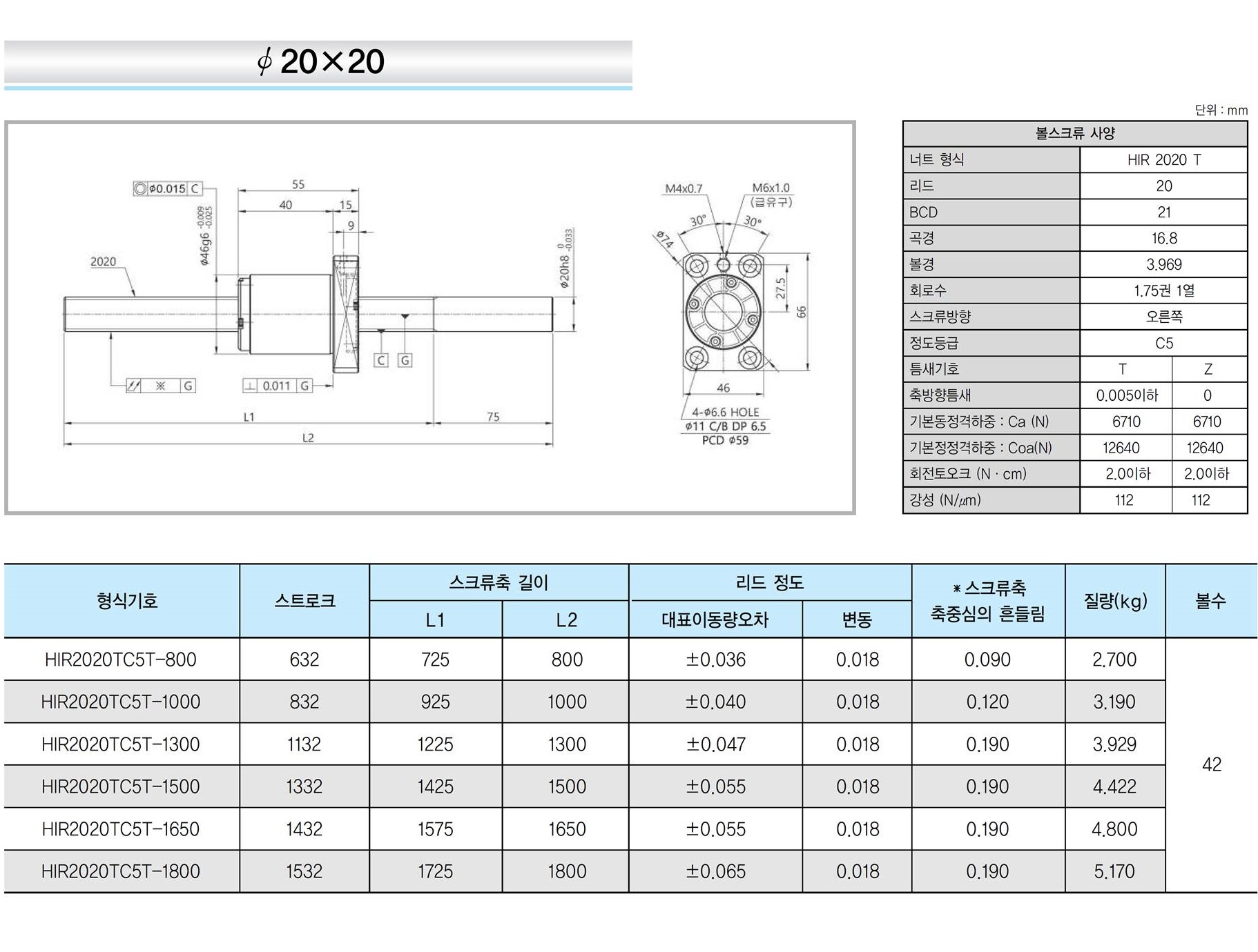 | 리드 1mm | 리드 2mm | 리드 4mm | 리드 5mm | 리드 8mm | 리드 10mm | 리드 20mm |