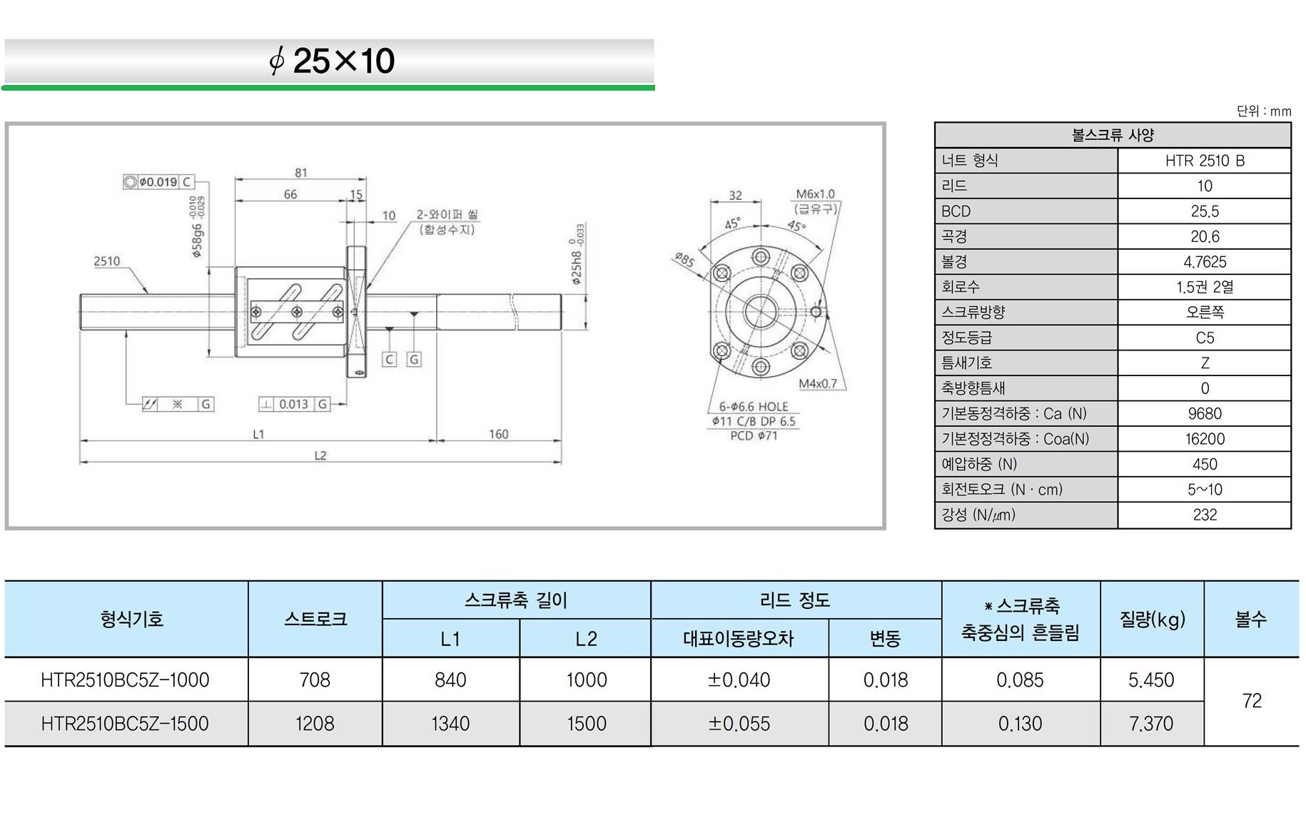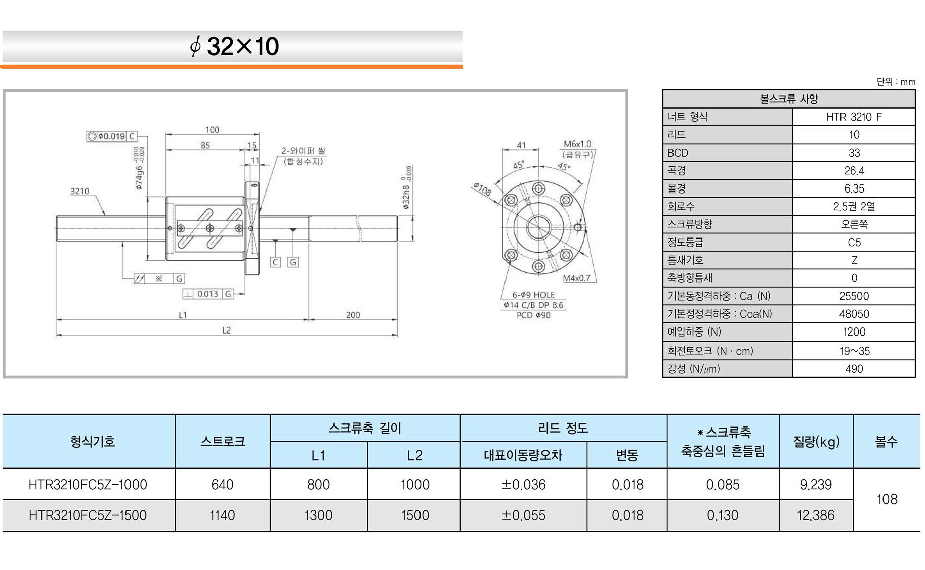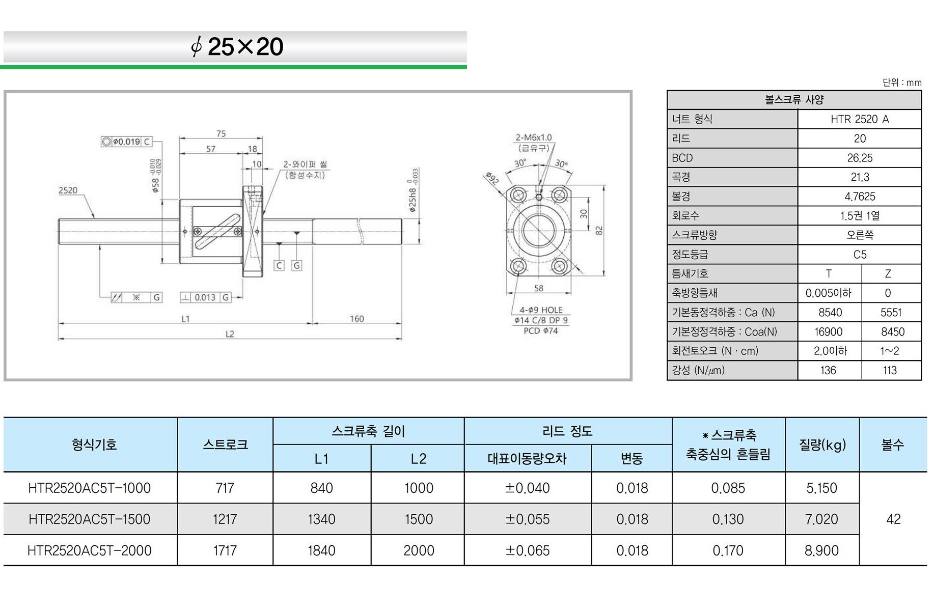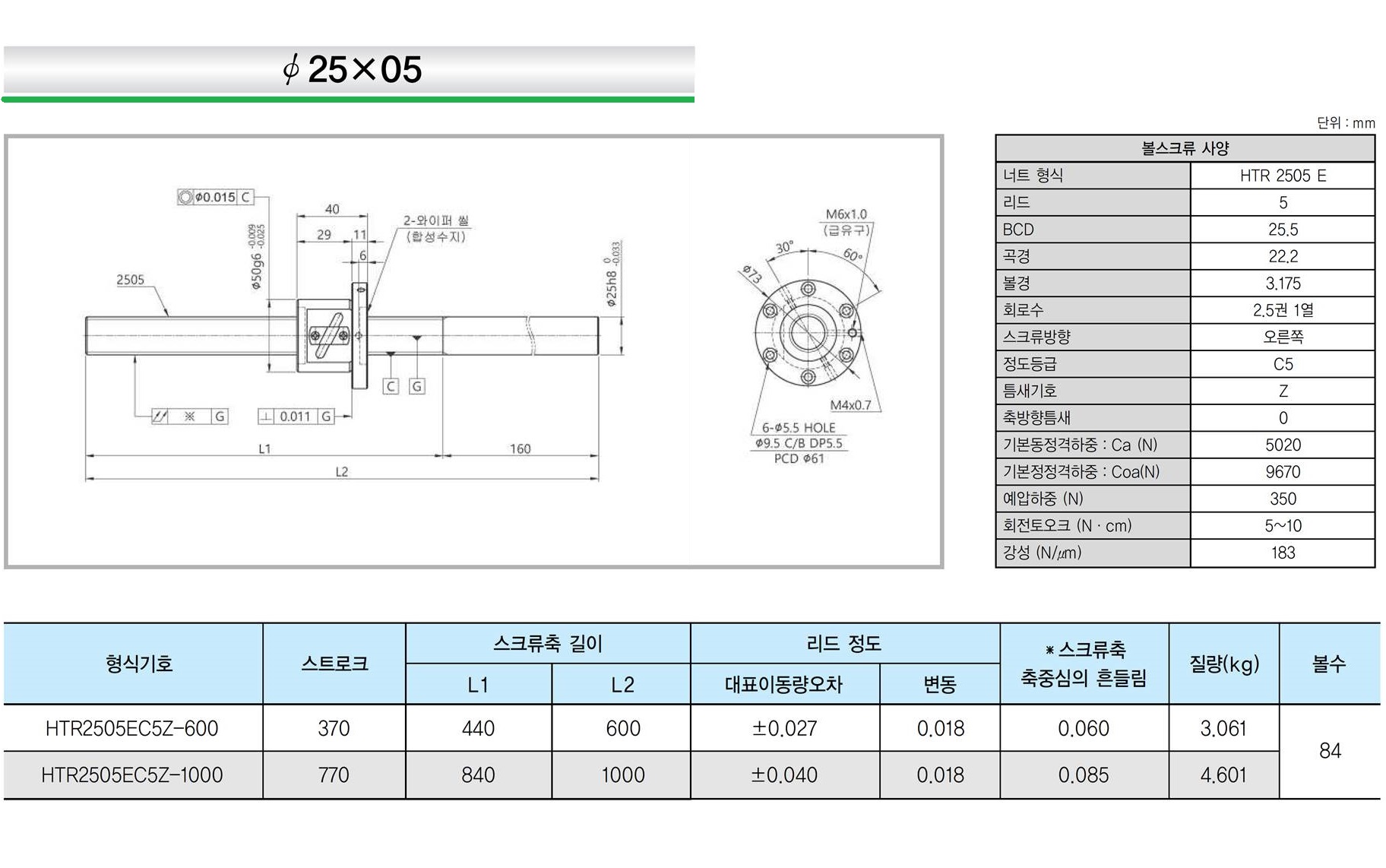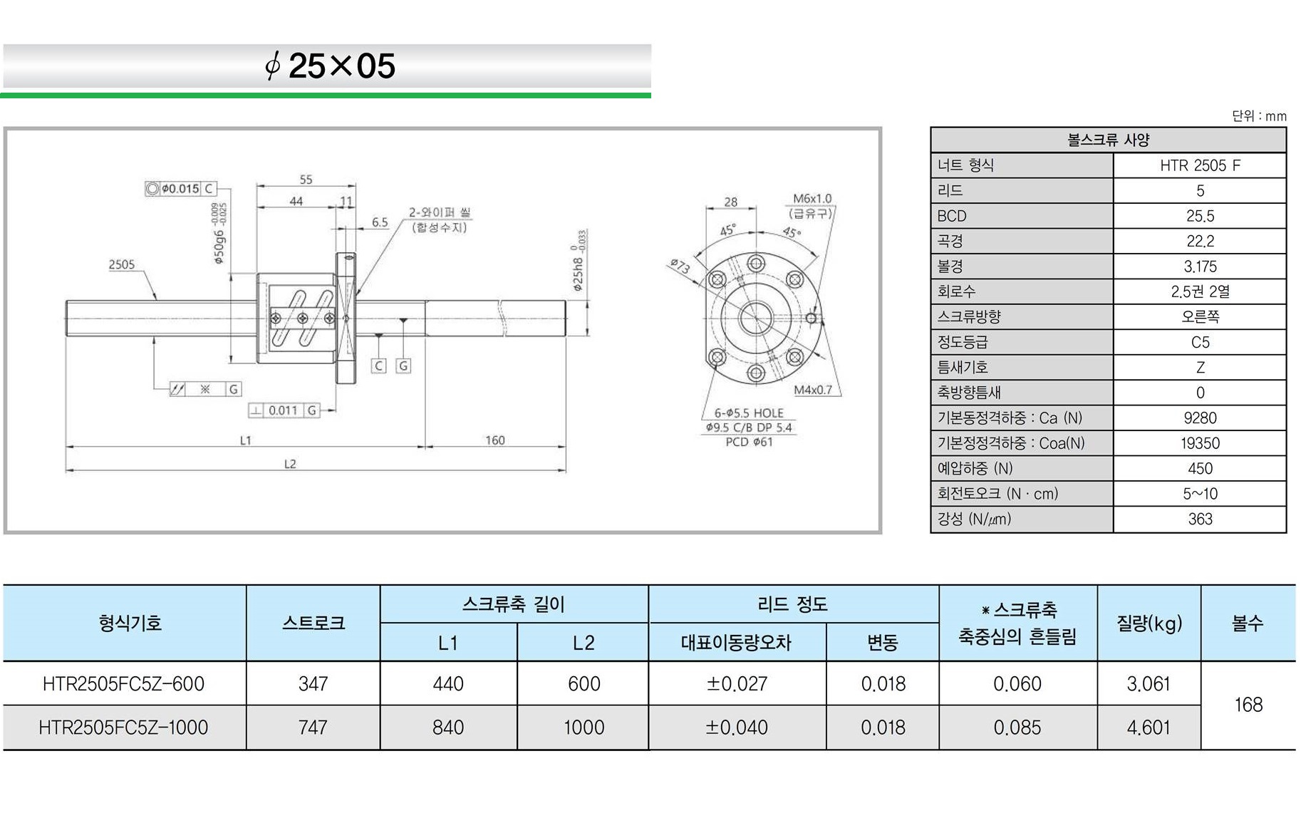 | 리드 1mm | 리드 2mm | 리드 4mm | 리드 5mm | 리드 8mm | 리드 10mm | 리드 20mm |