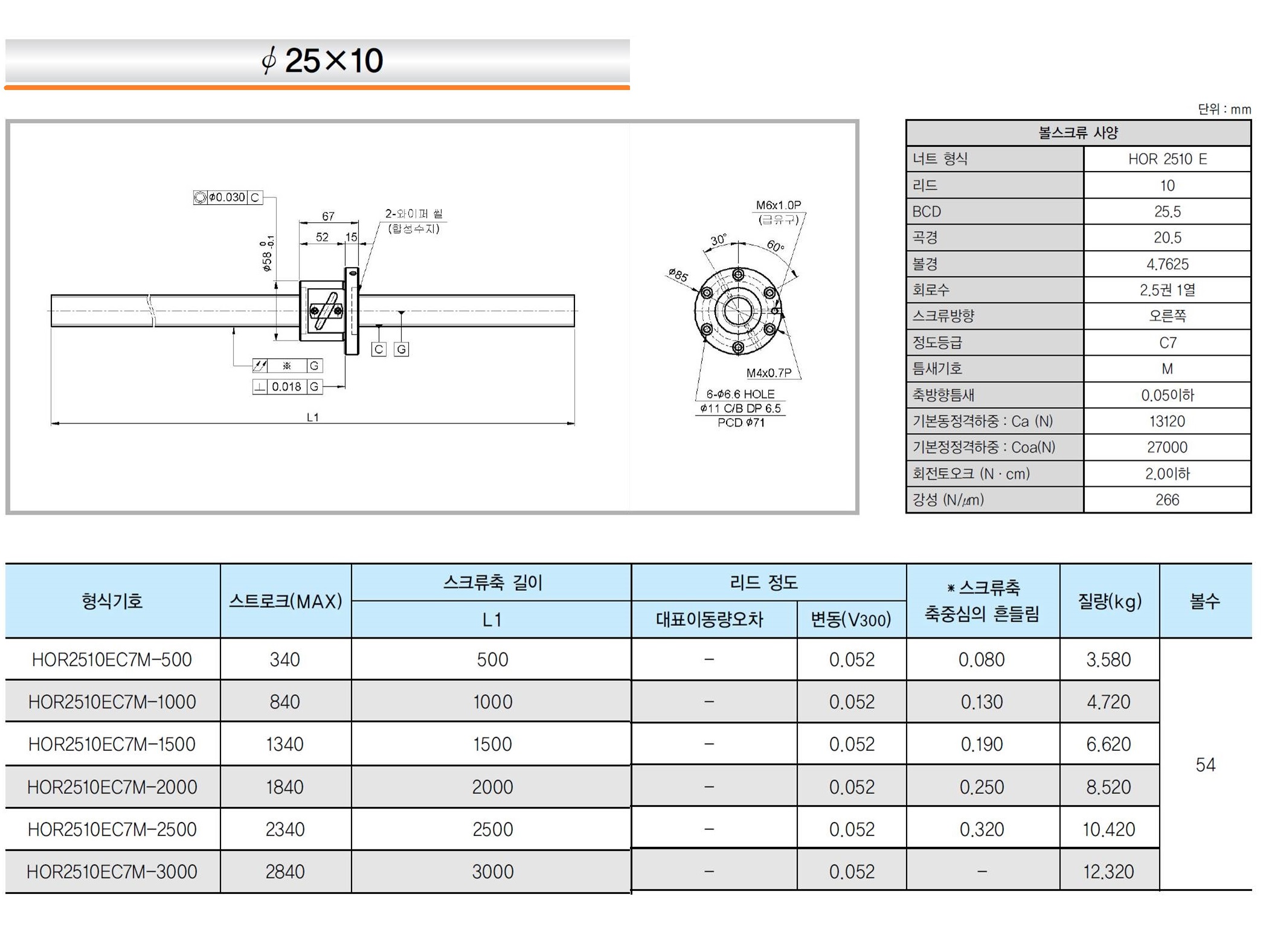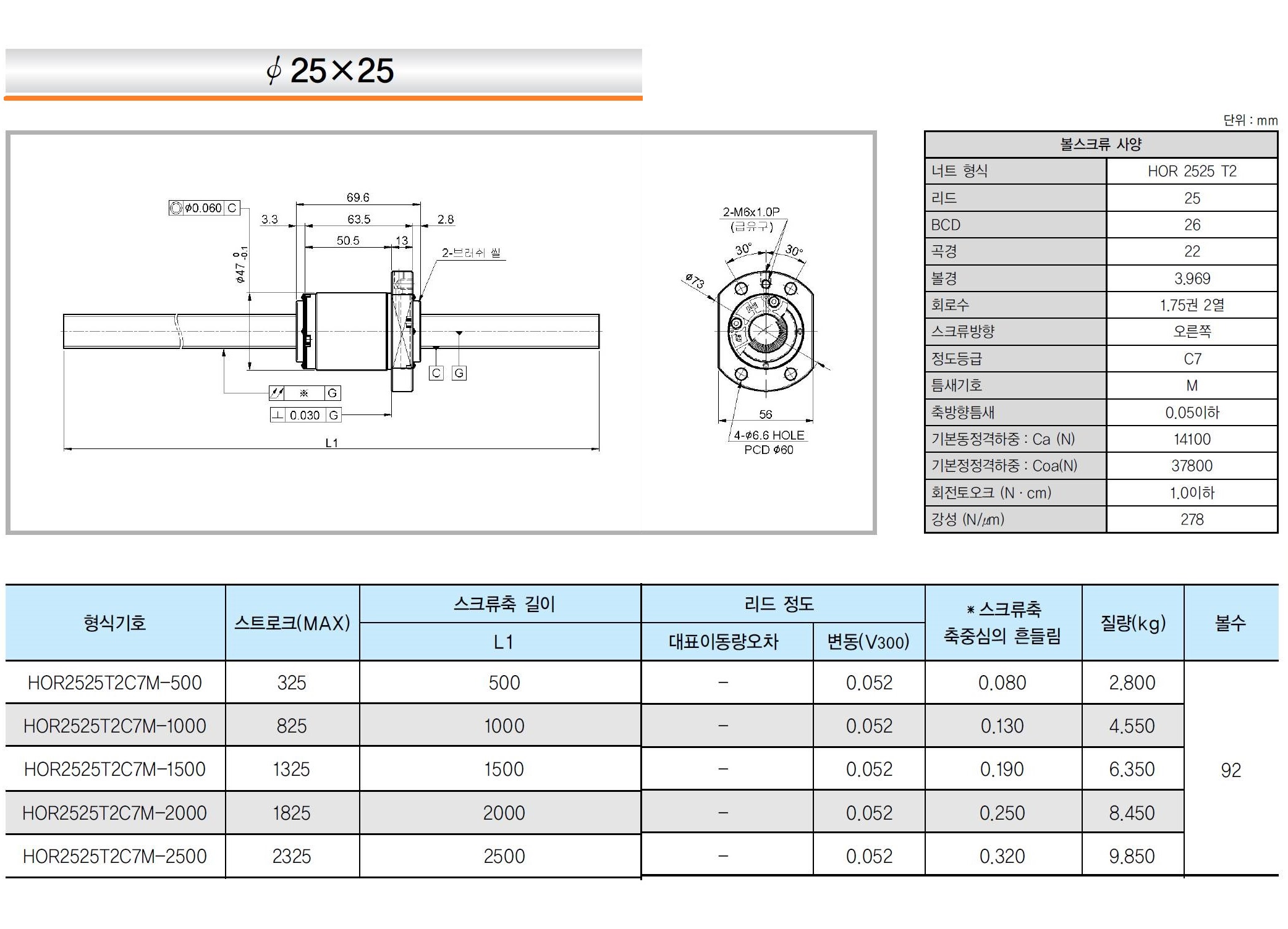 C7급 전조 볼스크류는 CNC 전조 머신으로 전조가공 후 전수 검사된 C7급(JIS-B1192)의 볼스크류입니다.