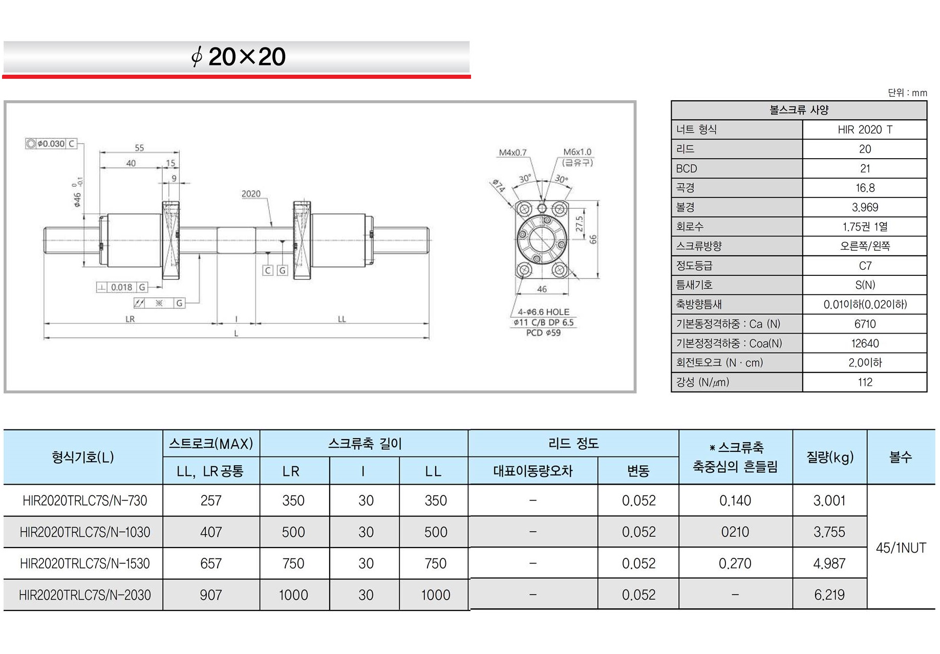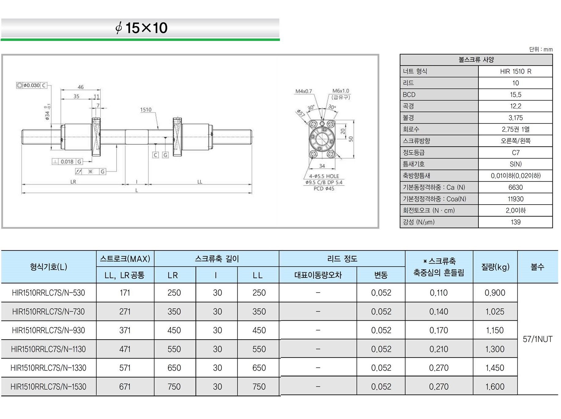 ISSOKU의 좌,우 일체형 볼스크류로 직경 φ12, φ15, φ16 및 φ20으로 4종이 생산되며, C7급 연삭 볼스크류입니다.