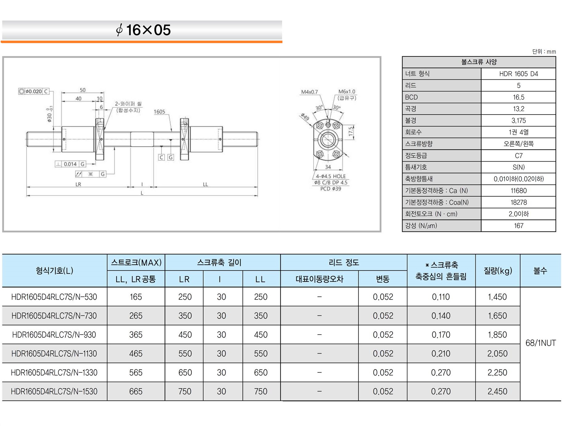 중간 부분의 비(非)나사 부분의 치수 변경은 불가하므로, 일반 볼 스크류와 같이 사용자의 필요에 따른 양단의 가공 만 적용하여 사용하시기 바랍니다.