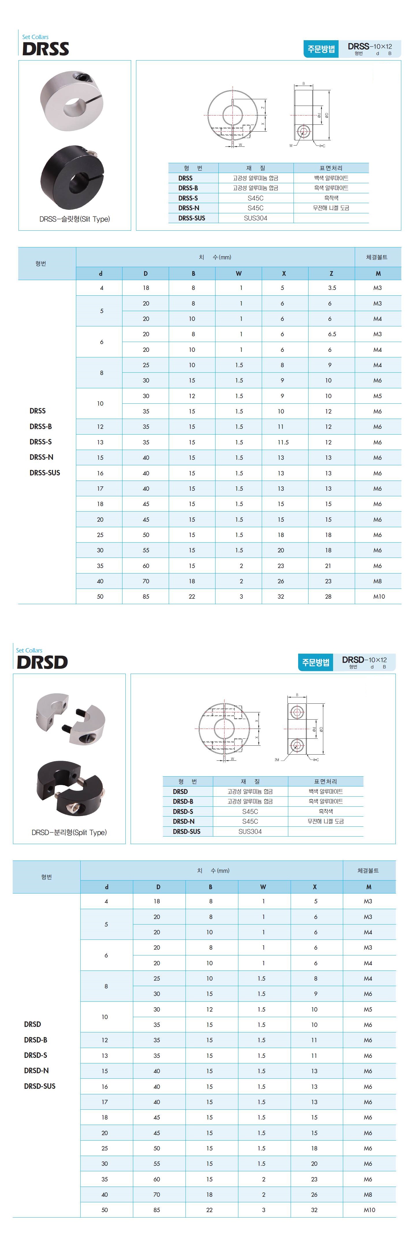 자동화부품 커플링 Set Collars 커플링 Set Collars point ■ DRSS : 슬릿형 (Slit Type) ■ DRSD : 분리형 (Split Type) LIST CATALOG DOWND Detail