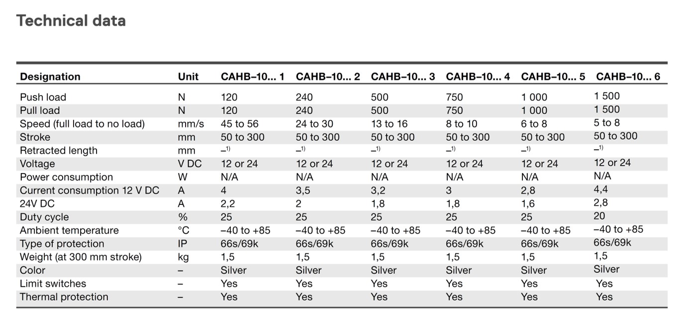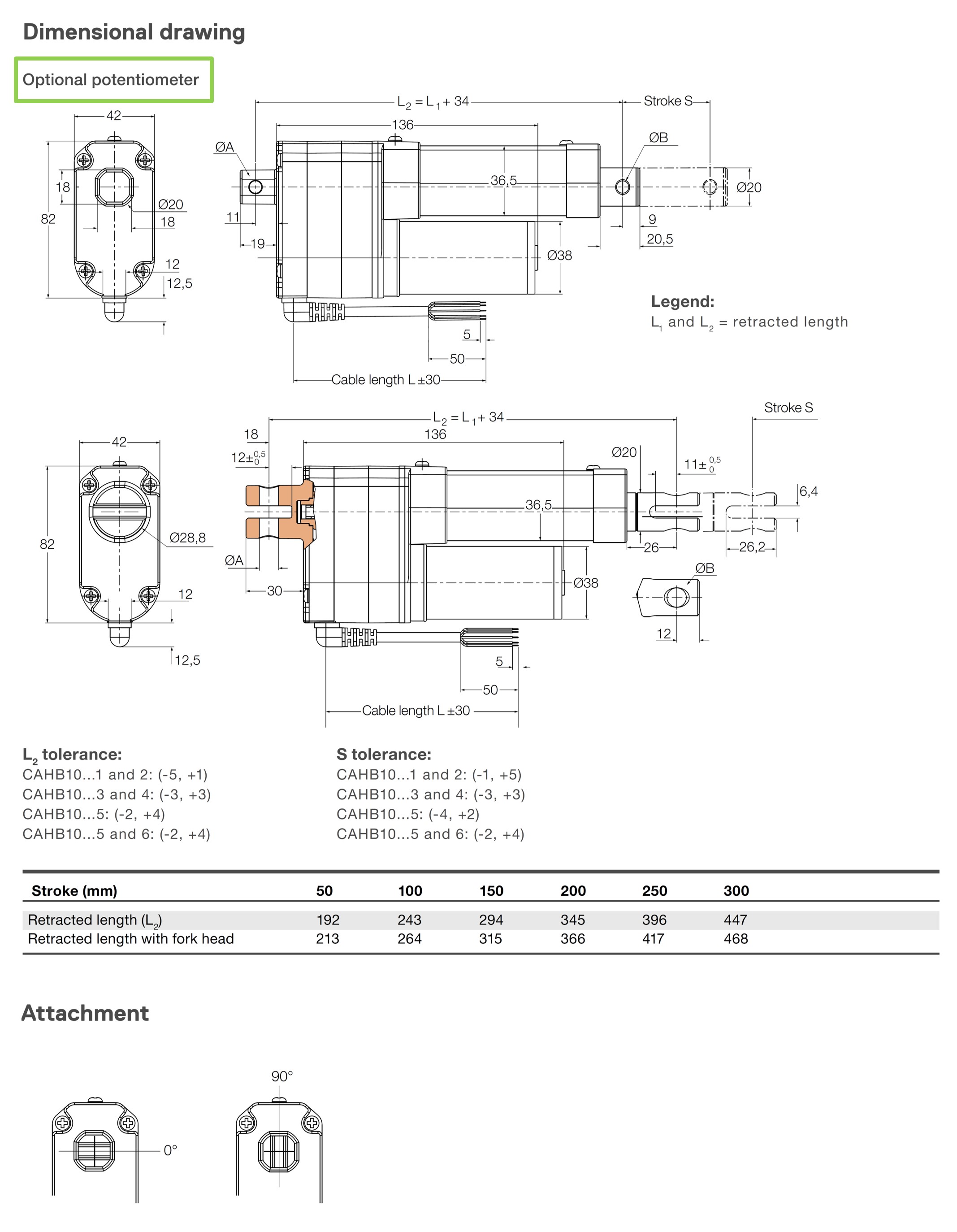 CAHB-10 Linear Actuator Series는 25% Duty Cycle 범위에서 -40℃ ~ +85℃ 온도 범위로 설계된 전자 기계식 Linear Actuator로 강력한 금속 기어 및 부식 방지 하우징을 특징으로 합니다. 추가 옵션으로 Potentiometer, Encoder 및 Fork Head Attachments등을 사용할 수 있습니다.
