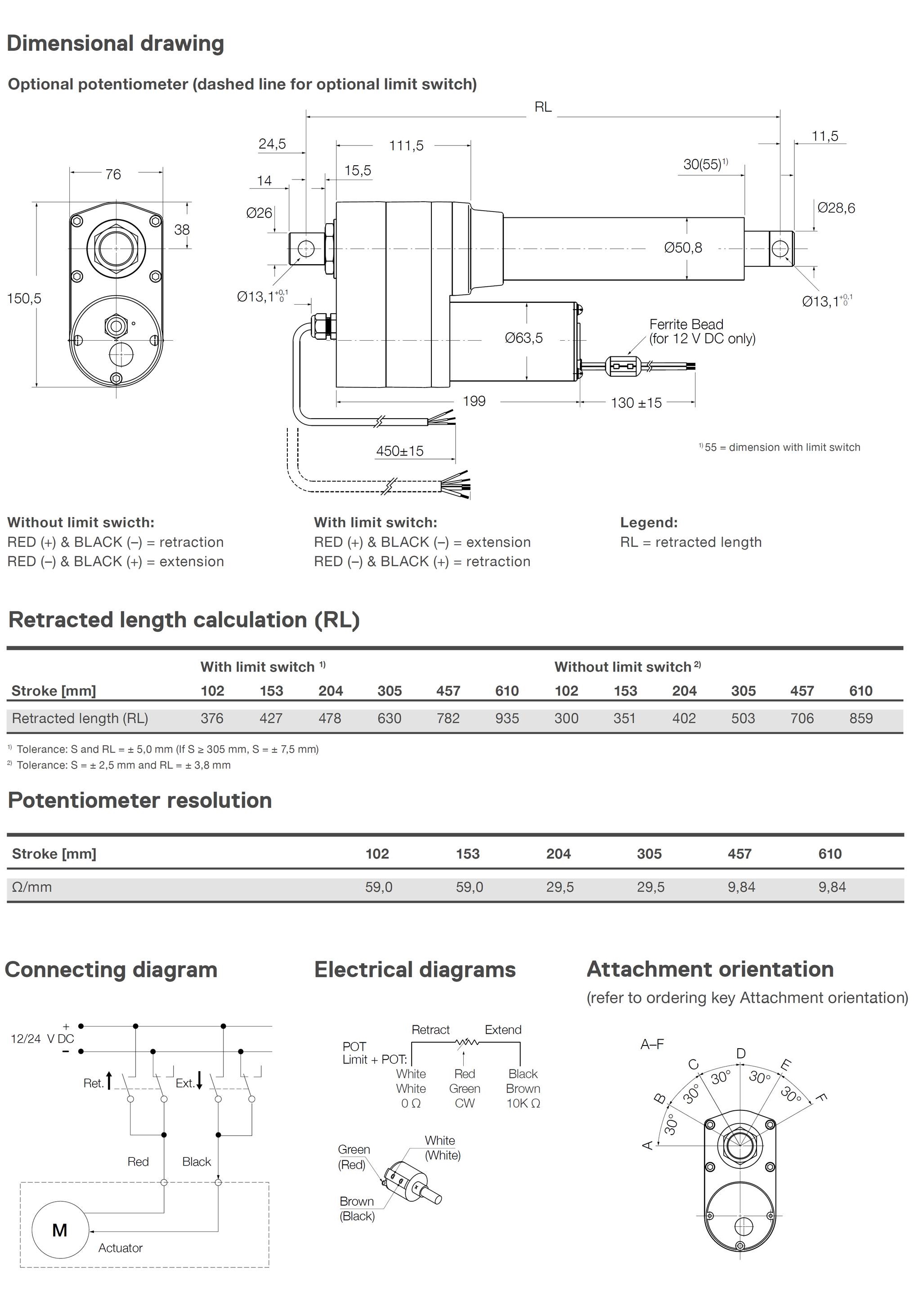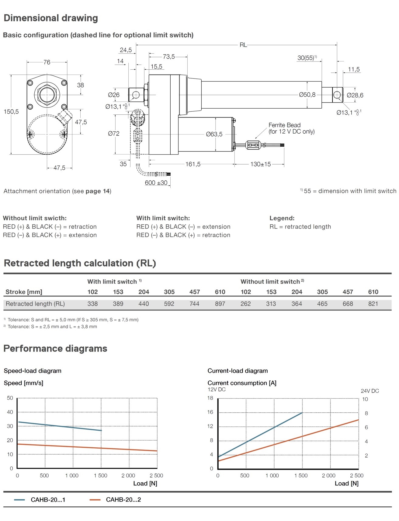 Linear Actuator CAHB 20A는 Limit switch 옵션, 가변 저항기로 임의의 위치를 구분할 수 있는 Potentiometer 옵션을 제공합니다.