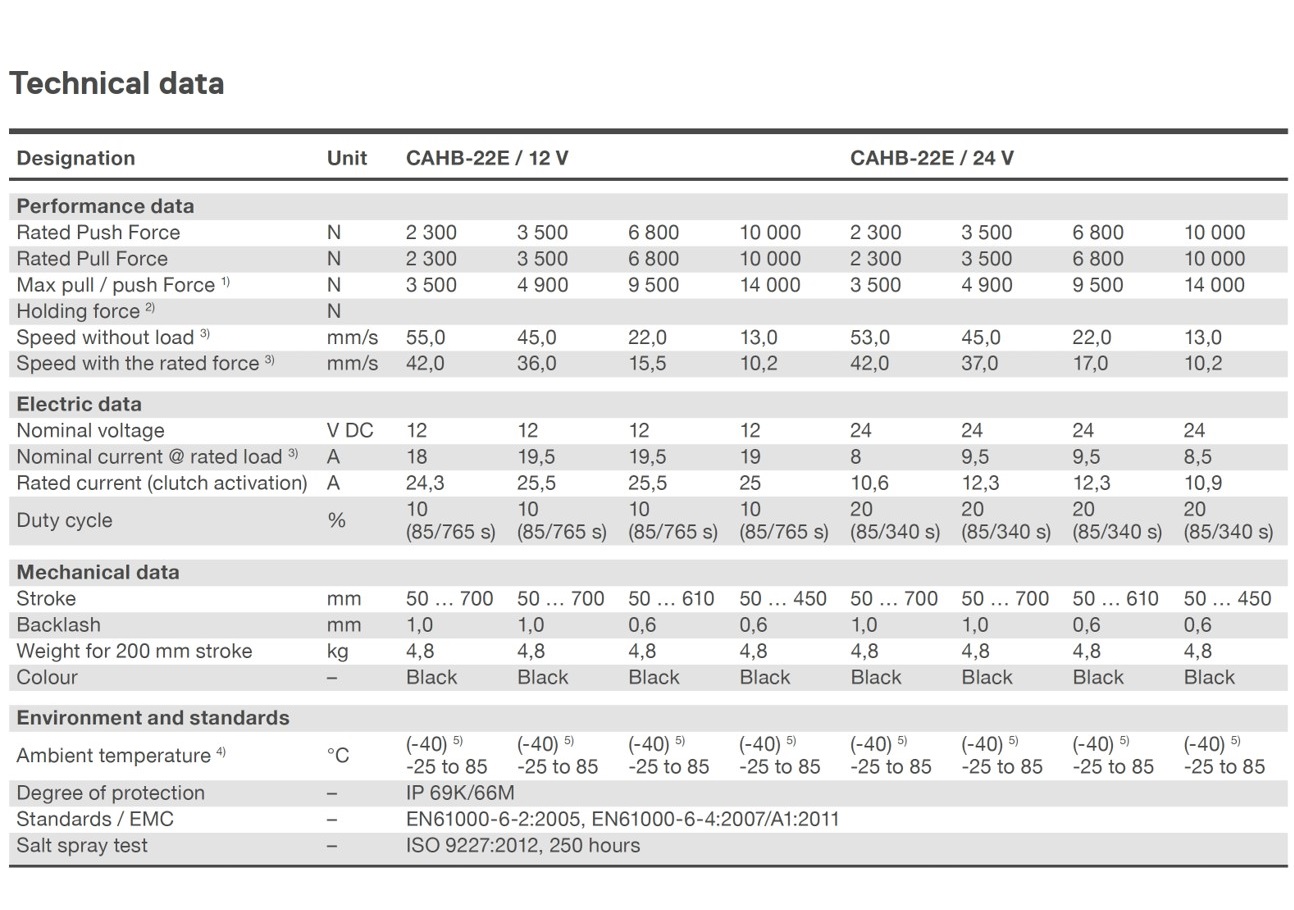 EWELLIX ( 에벨릭스, 구 SKF ) Linear Actuator CAHB 22E는 DC 전압으로 구동되며 중/대형 부하 애플리케이션을 위한 솔루션으로 제작되었으며, 사실상 유지보수가 필요없는 선형 Linear Actuator 입니다.