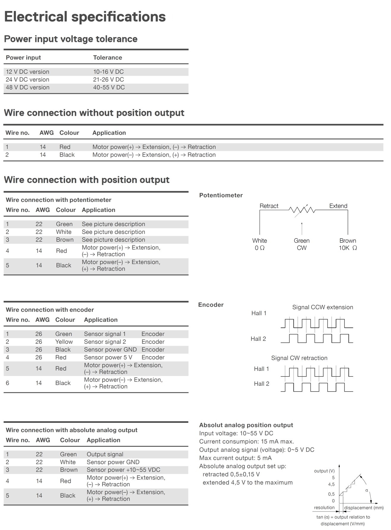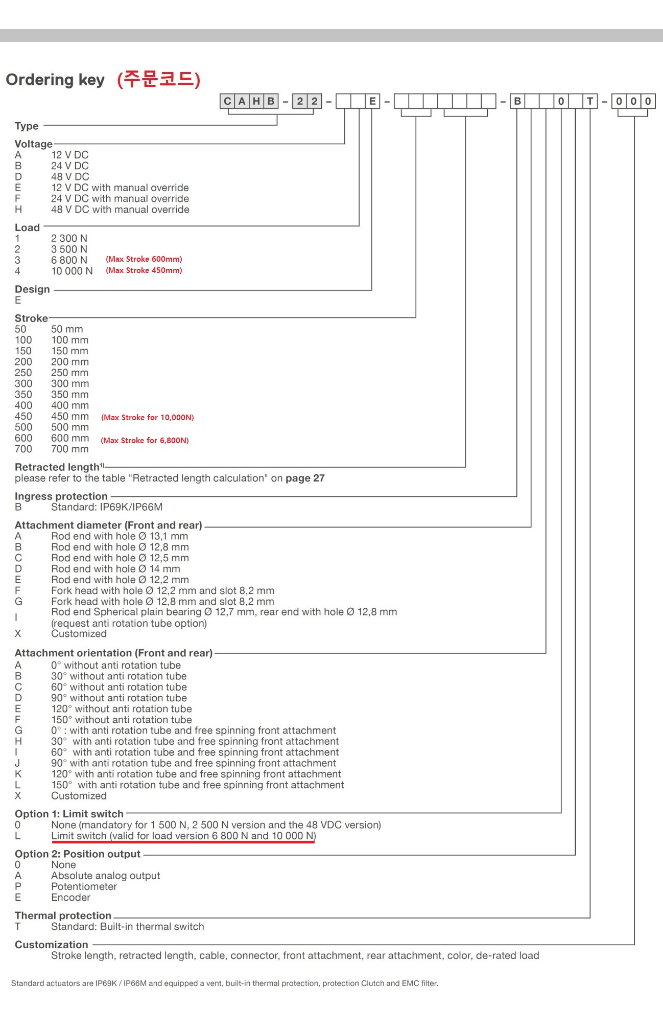 선형 Linear Actuator CAHB 22E는 낮은 백래쉬, 수동 재 지정 옵션, Limit switch 옵션, 가변 저항기로 임의의 위치를 구분할 수 있는 Potentiometer 및 Encoder 옵션을 제공합니다. 또한 새롭게 추가된 주행 튜브의 회전 방지 옵션을 선택하여 구매할 수 있습니다. 장착 모터는 DC 12V, DC 24V 및 DC 48V 중 선택 가능합니다.