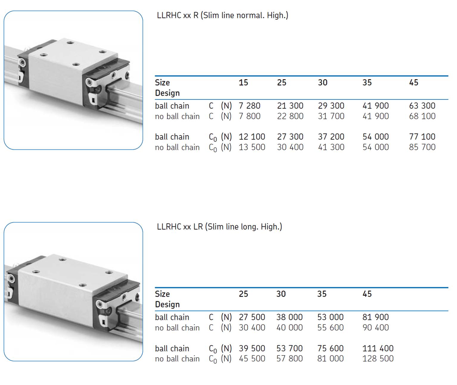 EWELLIX Ball Retainer LM가이드는 일반형 EWELLIX LLT와 대체 가능한 규격입니다.