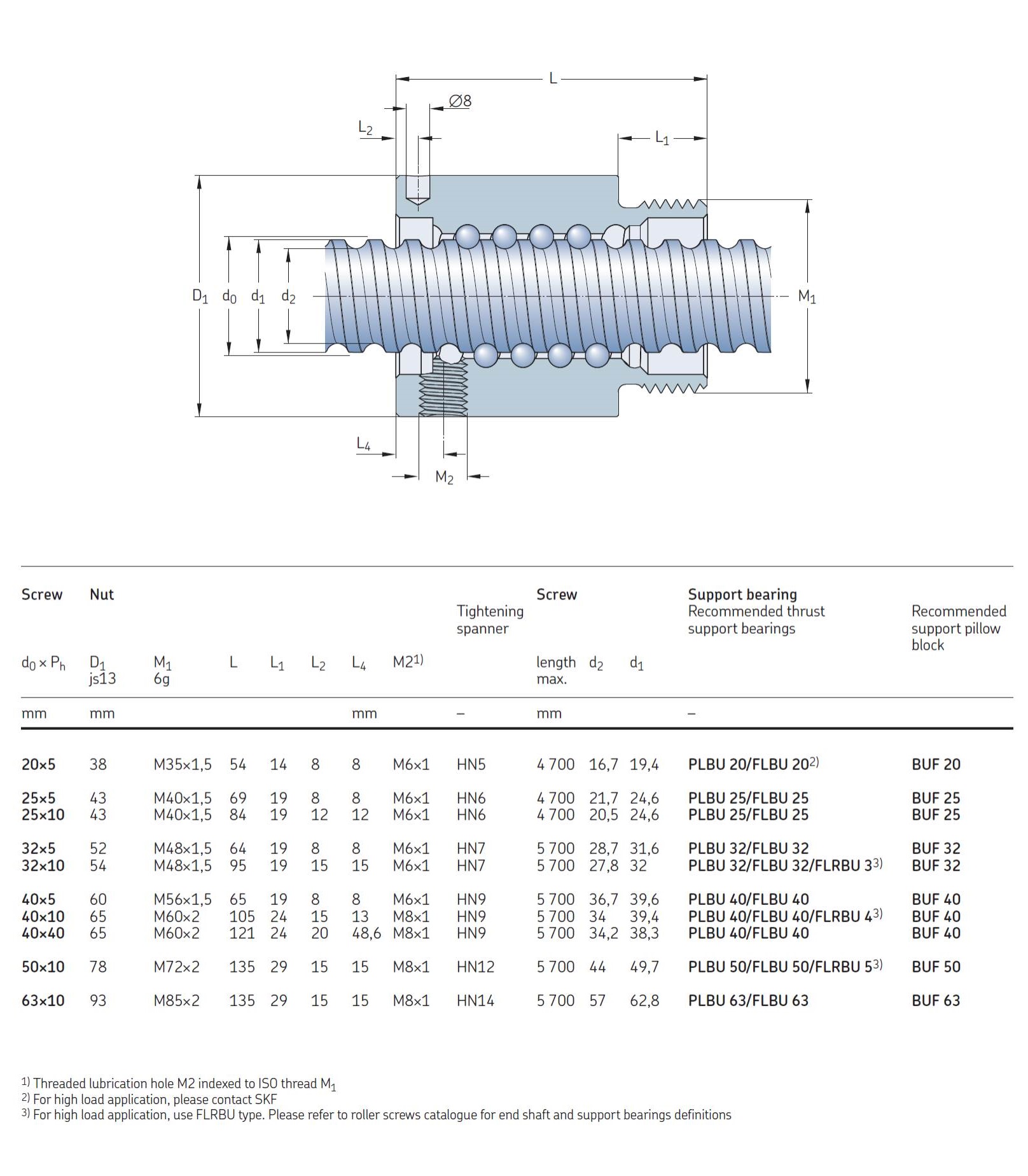 너트 설계는 나사산의 체결형 너트 또는 플랜지 (원통형 or DIN 표준69051)에 쉽게 통합 할 수 있습니다.