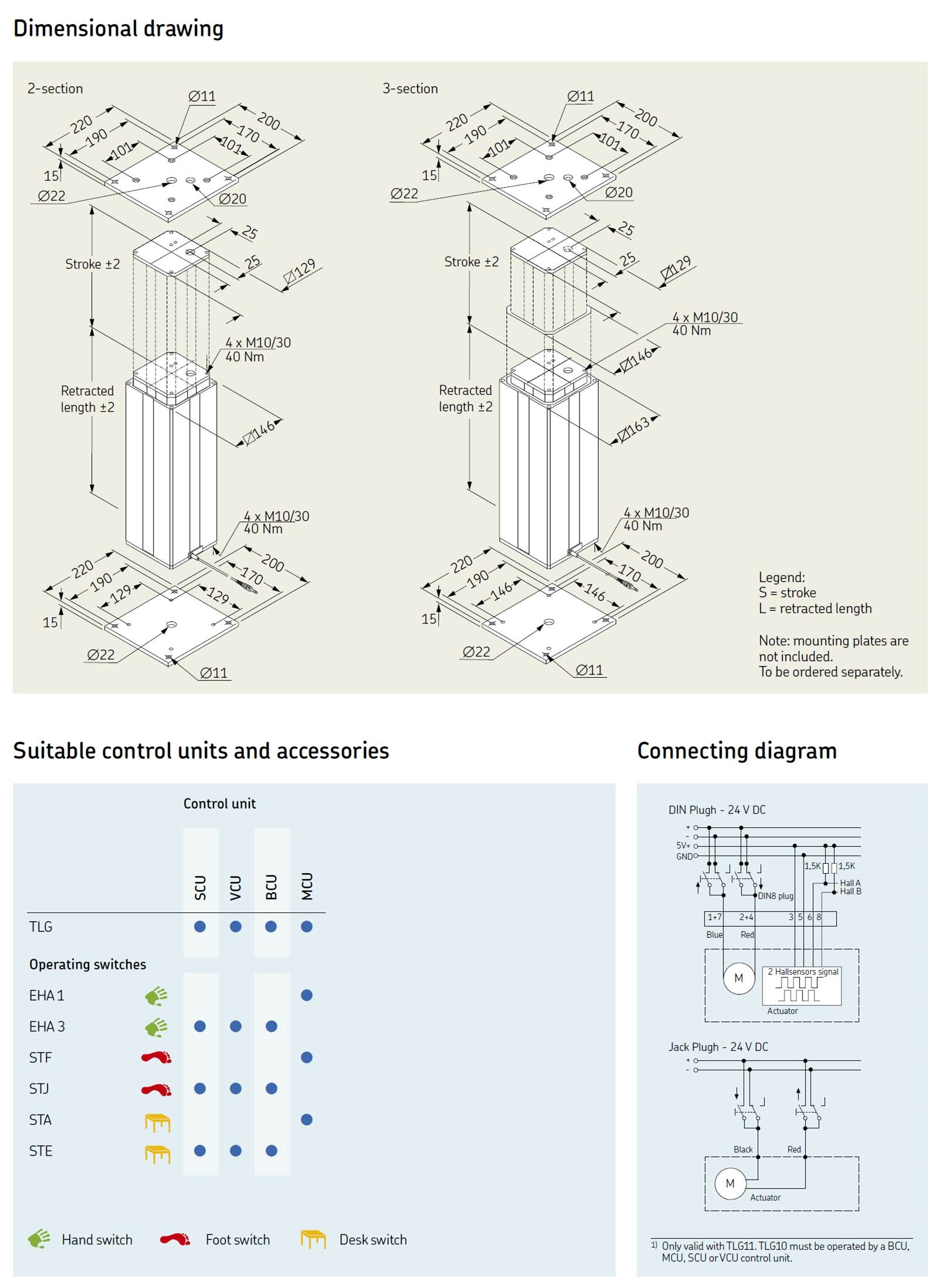 TLG 전기 실린더는 DC 모터를 사용하여 Max 4,000N의 Push 하중을 전달하는 솔루션을 제공합니다.