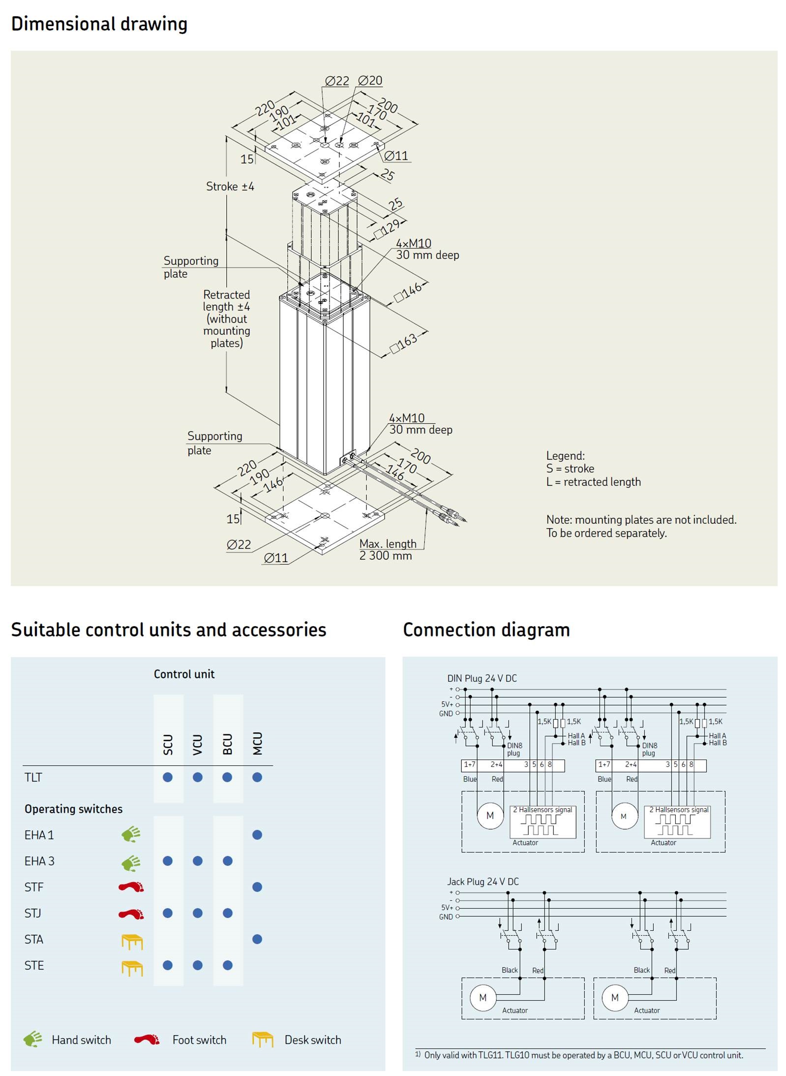 TLT Telescopic pillar는 트윈 세트의 DC 모터를 상요하여 Max 4,000N의 하중에 대한 Push load를 전달하는 매우 컴팩트하고 강력한 솔루션을 제공합니다.