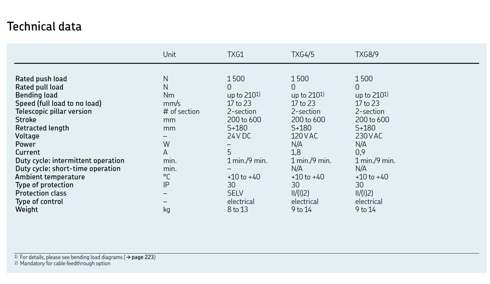 Max stroke (mm) | 200 to 600 mm |