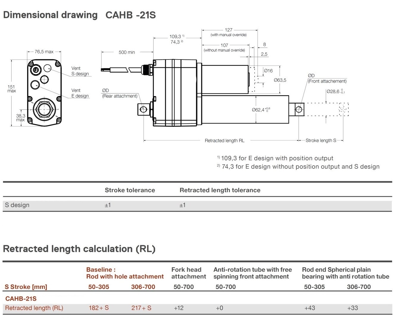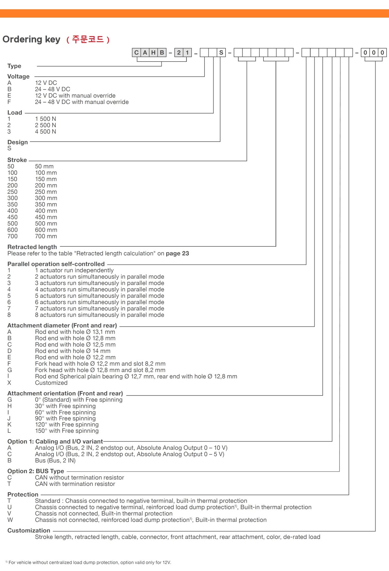 Smart Linear Actuator CAHB 2xS 시리즈의 기능 및 상세 설명은 전자카다록을 참고해 주시기 바랍니다.