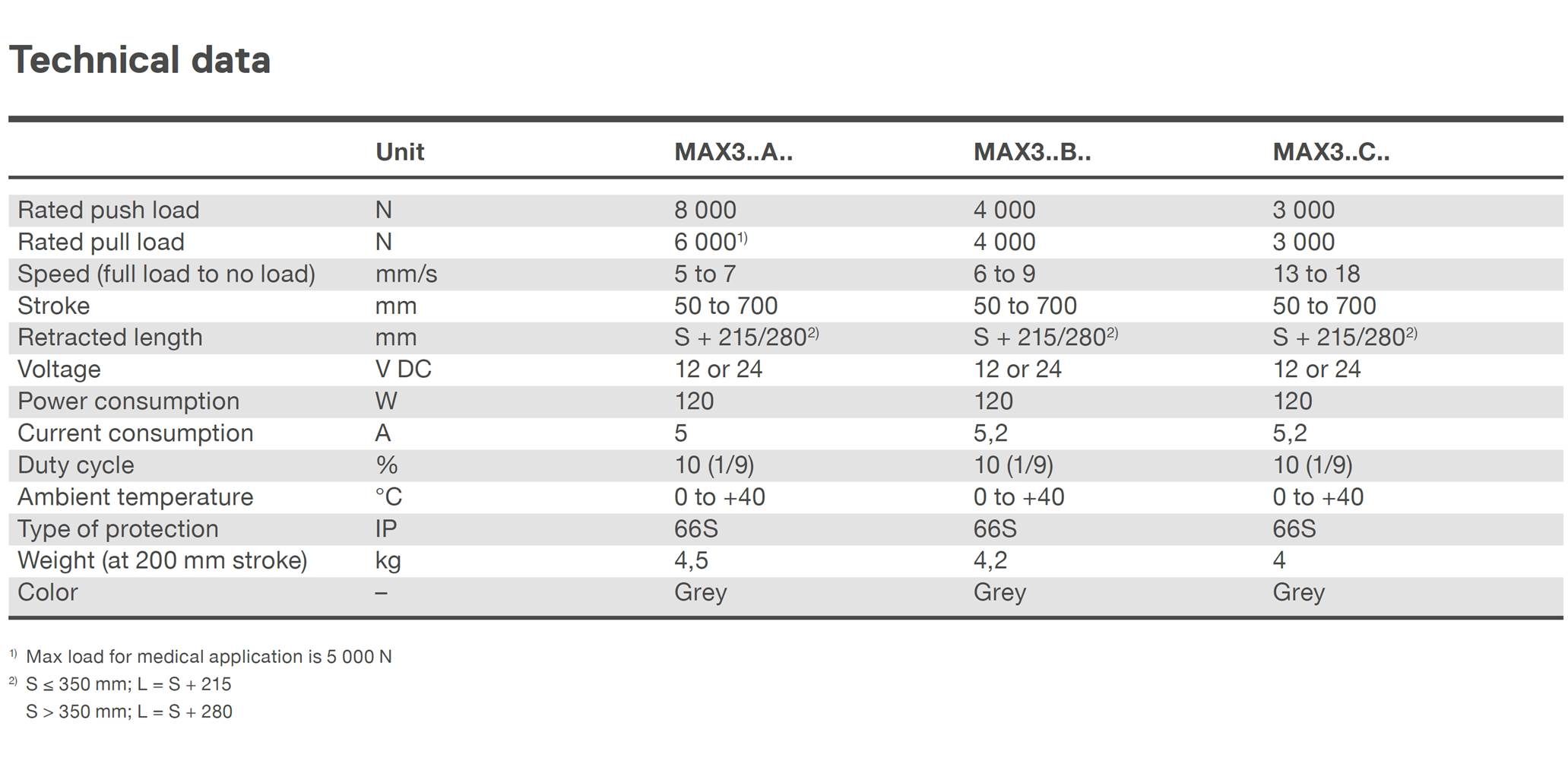 에벨릭스 리니어 액추에이터 MAX 시리즈는 의학적으로 승인되었으며 안티 피칭, 위치 피드백 및 비상정지와 같은 옵션을 사용할 수 있습니다.