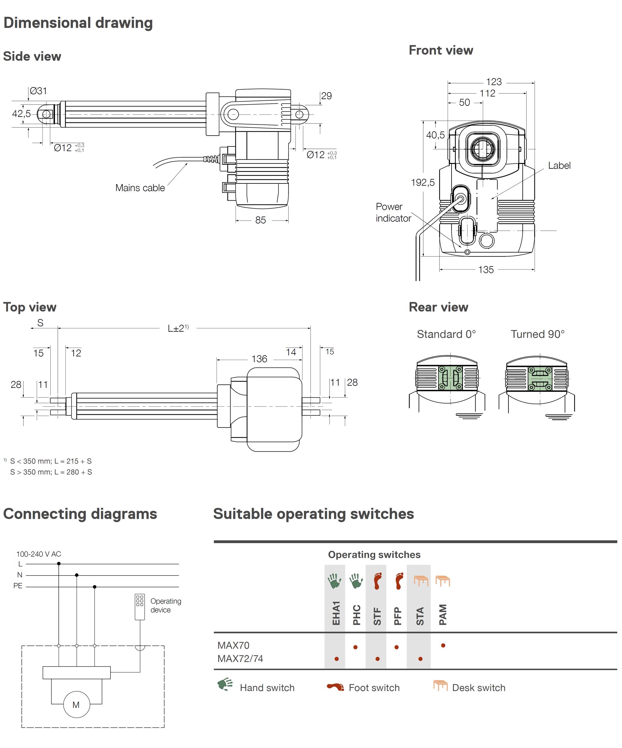 에벨릭스 (EWELLIX, 구 SKF) Linear Actuator MAX-7에는 AC 모터가 포함되어 있습니다. 매우 조용히 구동하는 Linear Actuator로 공간을 거의 차지하지 않으며 수직 또는 수평 위치에서 모든 각도로 설치할 수 있습니다.