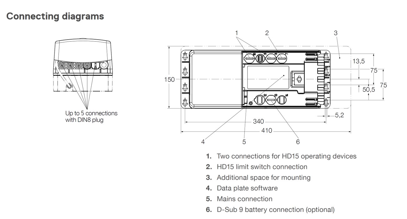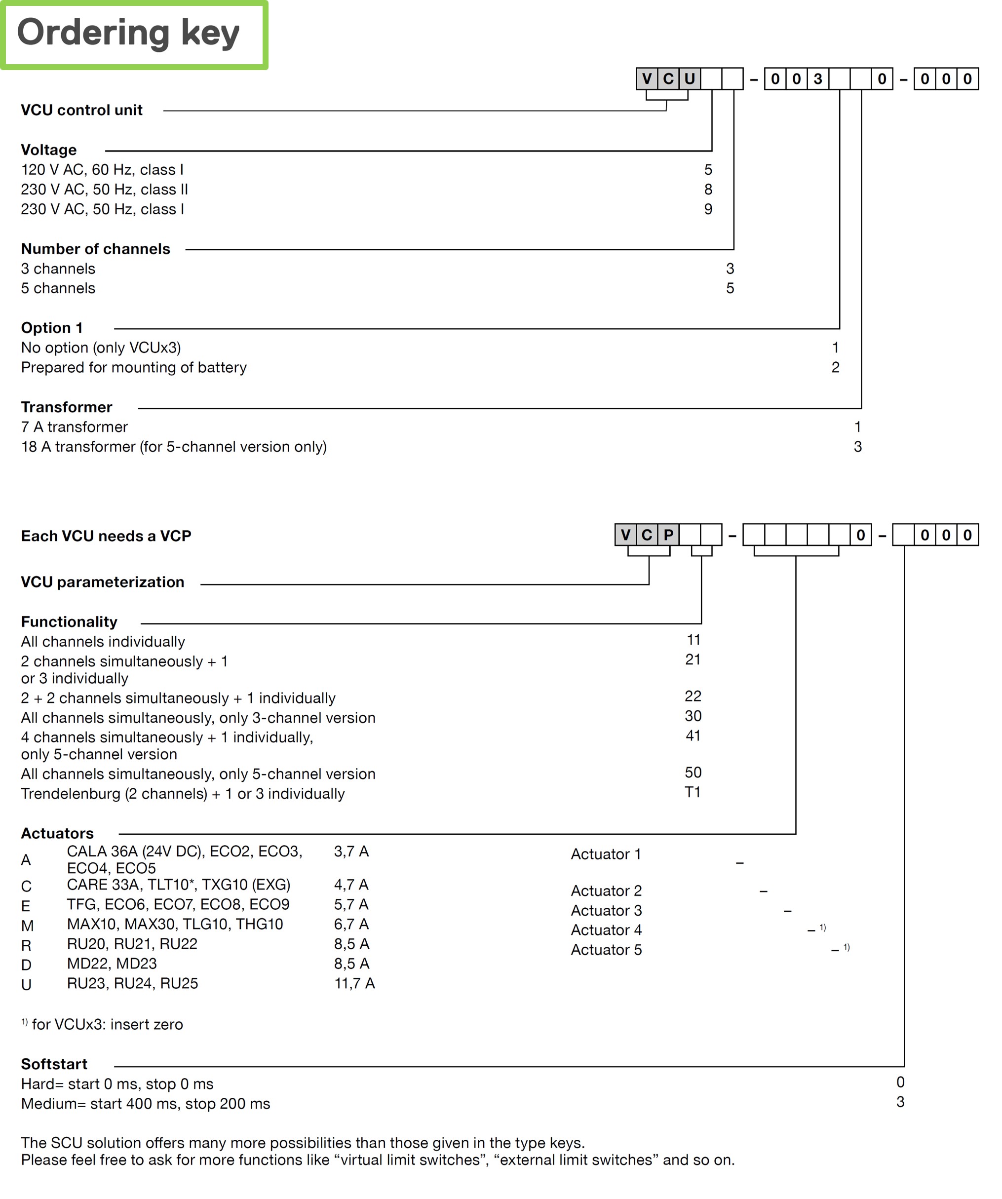 최대 5개의 액추에이터를 위한 컴팩트한 컨트롤 유니트입니다. VCU는 모터 출력의 개별 파라미터화가 가능합니다.